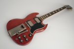 This is one of those guitars we dream about seeing walk into the shop. A portal to when the electric guitar was the new frontier in music and instrument companies were looking to innovate and create the new standard. Debuting in 1961, this guitar was released as the new Les Paul model after almost a decade of the original single cut examples we know and love. It lost its Les Paul title a couple years later and eventually became the SG. This single family owned guitar is an incredible example of that model and has a couple of features that make it a unique piece unto itself with its factory "Stinger" finish on the back of the headstock as well as a factory out of phase pickup. This is a one of one.