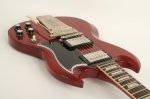 Regardless of the fact that George Harrison and Eric Clapton rocked a '64 SG™ Standard, that model year was clearly a standout for SGs in general. The clunky side-pull vibrato had been replaced by the dependable Maestro Vibrola. The neck profiles had increased in size, resembling the profile found on 1959 Les Pauls™. And the balance, playability and look of the SG seemed to come into its own. For all those reasons, the Gibson Custom Shop is proud to present the newest member of the Historic Reissue family -- the 1964 SG Standard Reissue. Along with the Maestro™ Vibrola and chunky neck profile, it has all the hyper-accurate vintage specs one could possibly want -- original construction methods, a real red aniline dye finish, chemically-recreated plastics, replica electronics, and more. The result is perhaps the best looking, feeling and sounding SG Reissue yet.