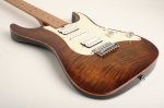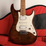 This guitar is in very good cosmetic condition with a few blemishes to the back of the guitar. All marks/dings/scratches are documented in the photos. The flame maple top is in great condition with only signs of very light play wear. Playability is excellent with fast low action without buzz, and the stainless steel frets have zero fret wear. Comes with a Gator Cases Transit Gig Bag, no other paperwork or accessories are included.